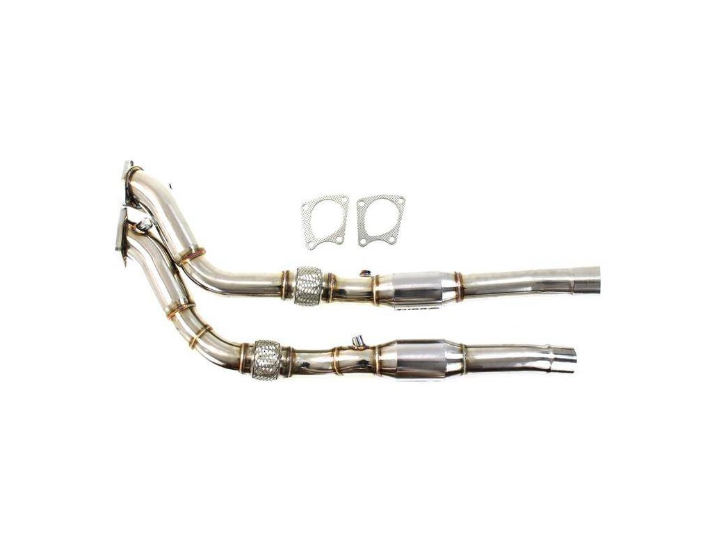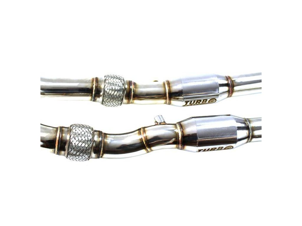 Downpipe TurboWorks s katalyzátory 200CPSI, vyrobený z nerezové oceli.