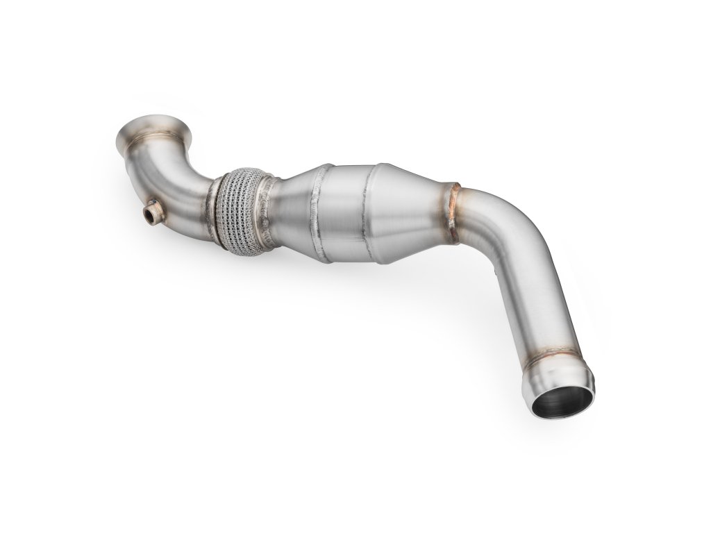 Mercedes-Benz W204 S204 220CDI EURO 5 Downpipe je produkt v kategorii Výfukové systémy pro vozy Mercedes-Benz. Jde o trubku, která v autě nahrazuje původní katalyzátor. Downpipe se používá ke zlepšení výkonu motoru zvýšením průtoku výfukových plynů, což zase zvyšuje výkon motoru a odezvu plynu. Tento produkt je určen pro modely Mercedes-Benz W204 a S204 s označením motoru 220CDI.