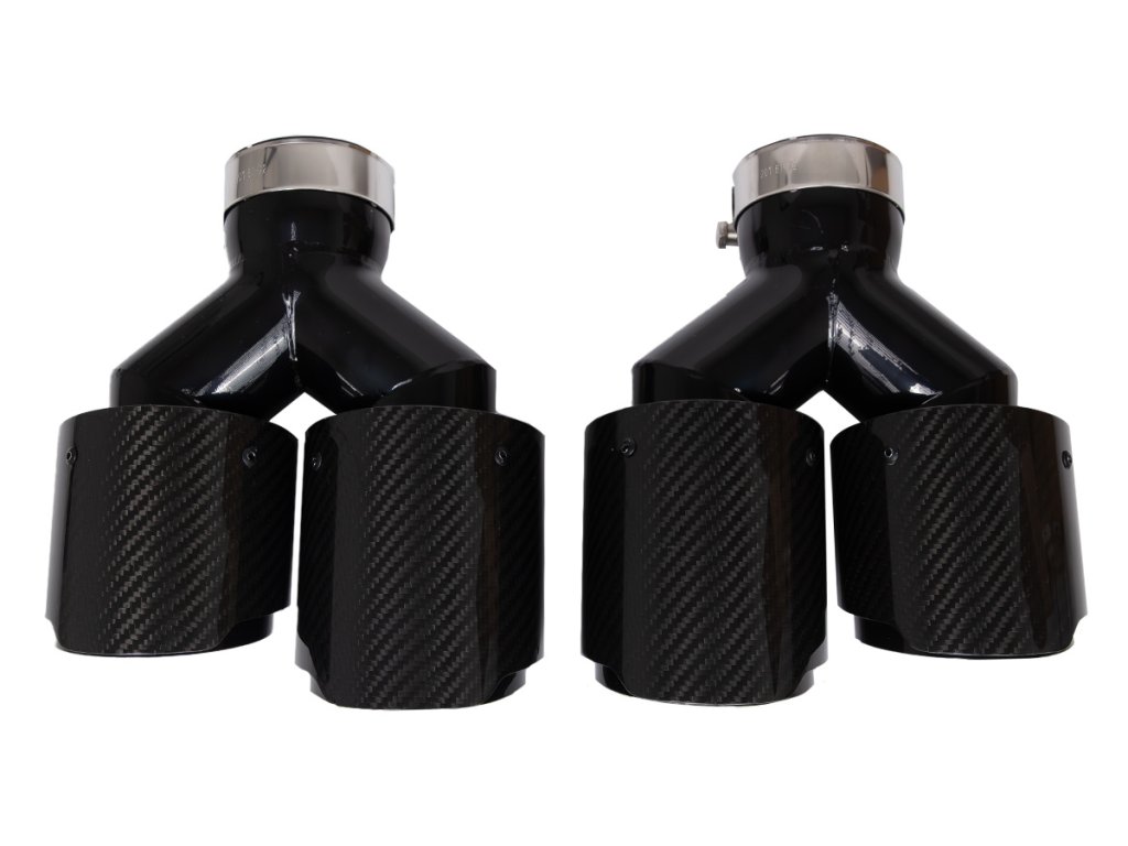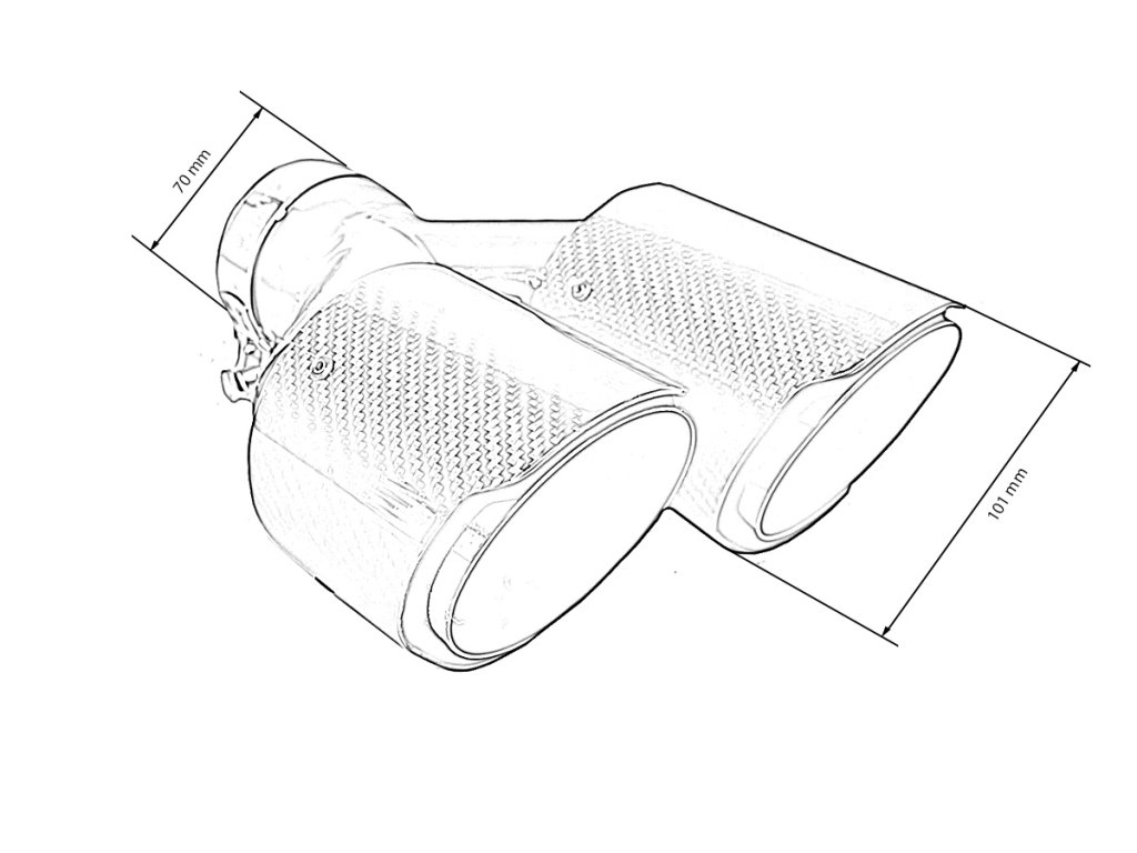 Koncovka výfuku 2x101mm, vstup 70mm, sada karbonových lesklých