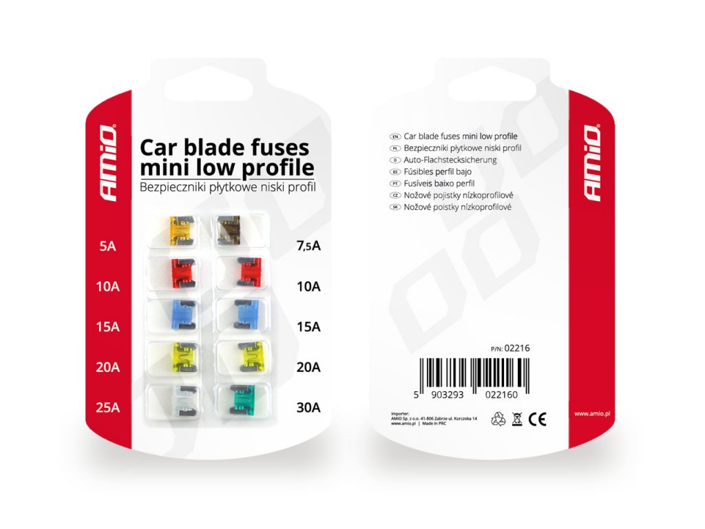 - Kvalitní sada nízkoprofilové pojistek na ochranu elektrických instalací před poškozením.