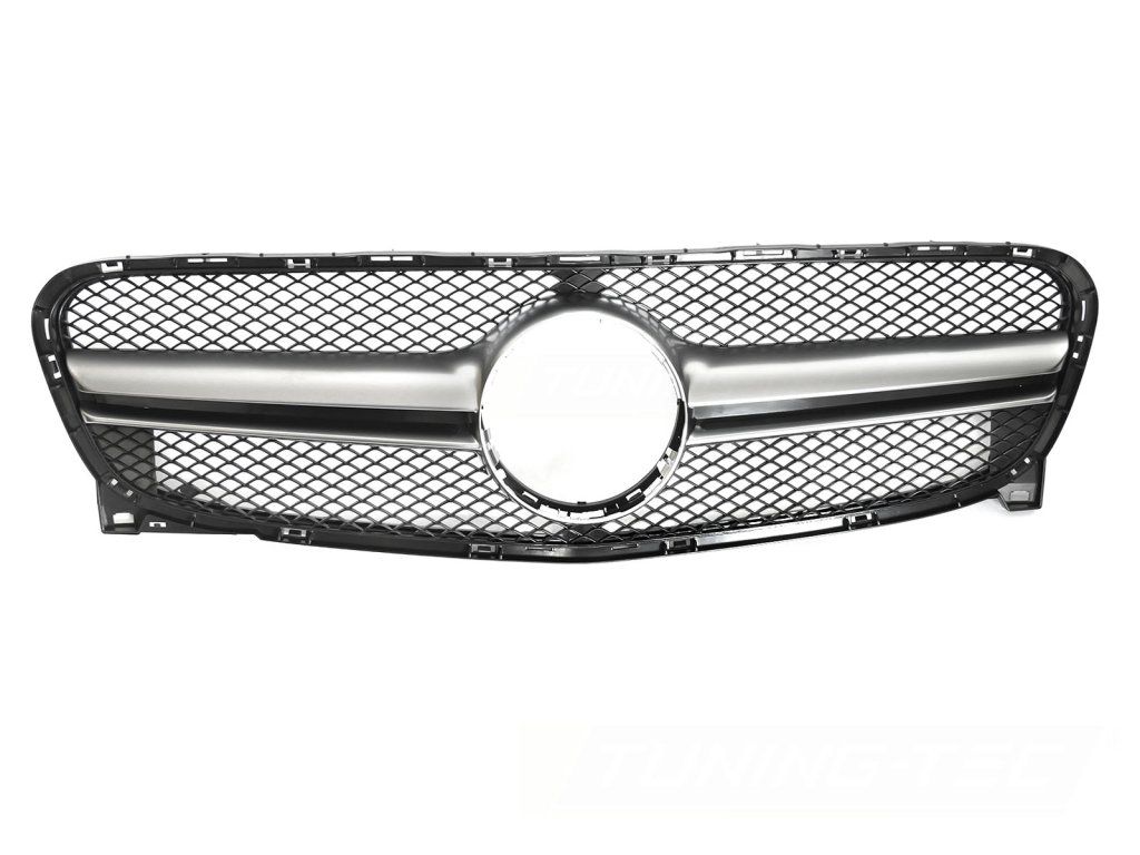 Přední mřížka chladiče v provedení černá – stříbrná je ideální volbou pro oživení vzhledu vozu Mercedes-Benz GLA X156. Kombinace černého základu a stříbrných prvků dodá vozu elegantní a zároveň sportovní charakter.